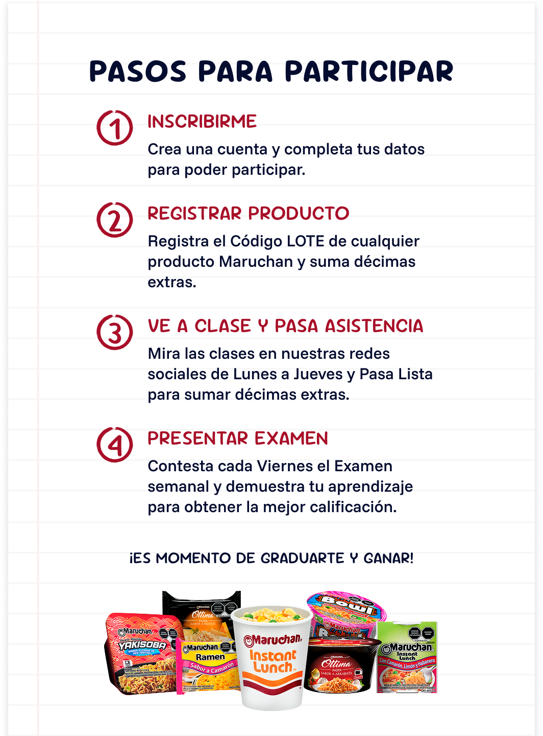 Los maruteachears darán datos y facts sobre Maruchan durante sus clases que también serán preguntas en el examen de cada viernes para sumar puntos.